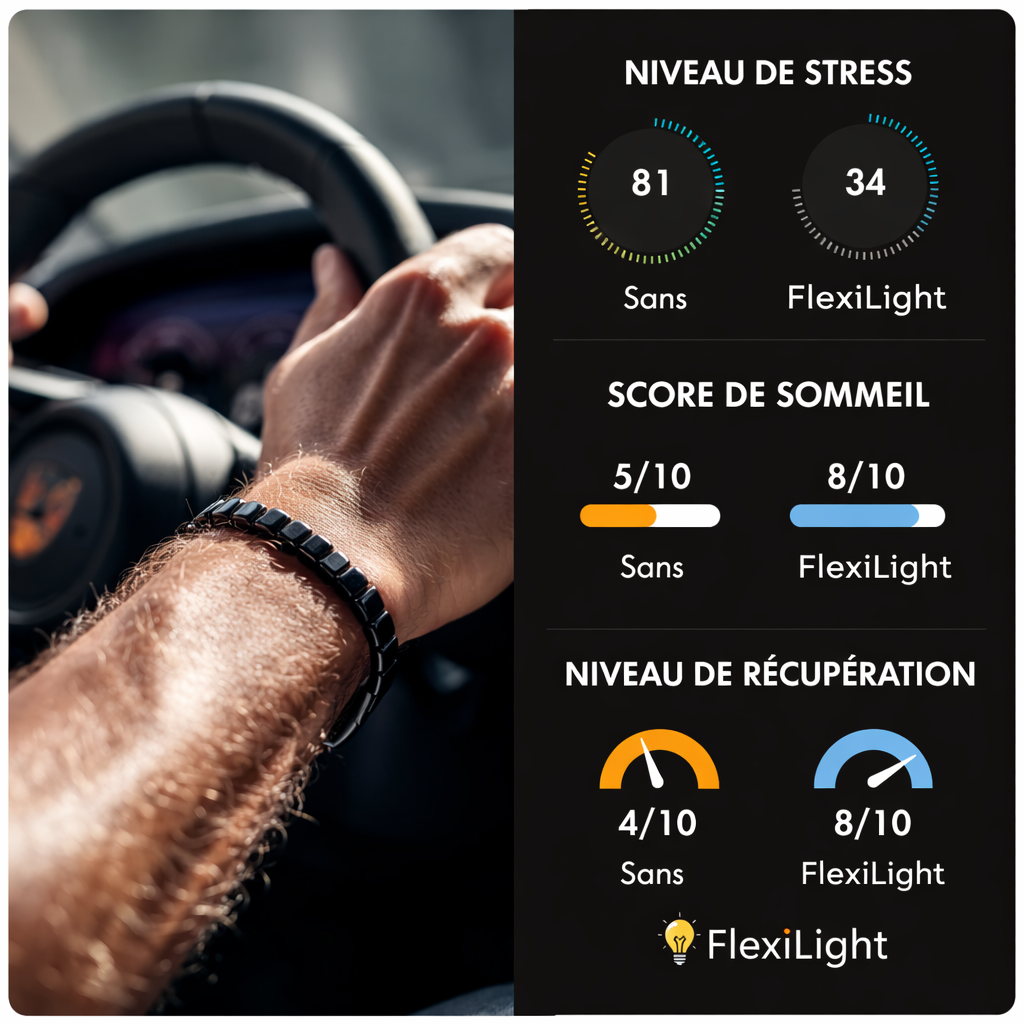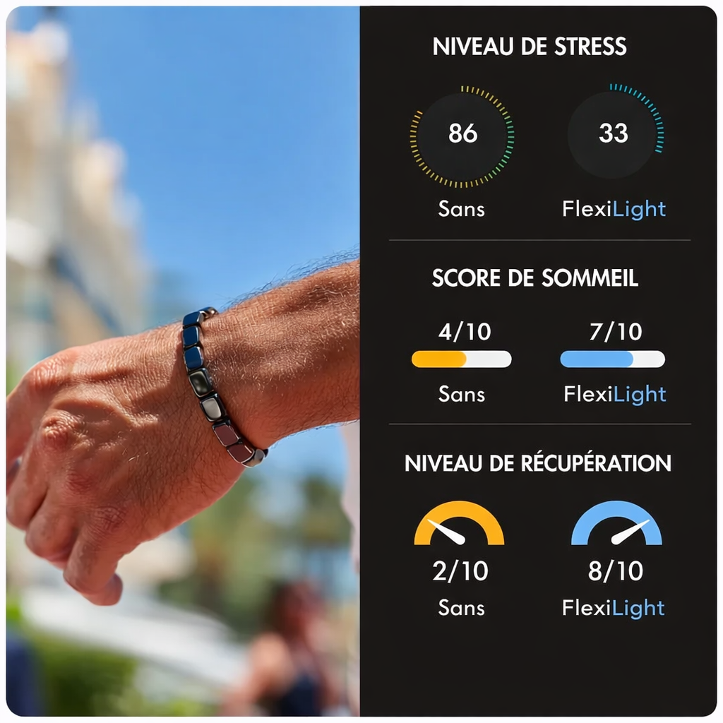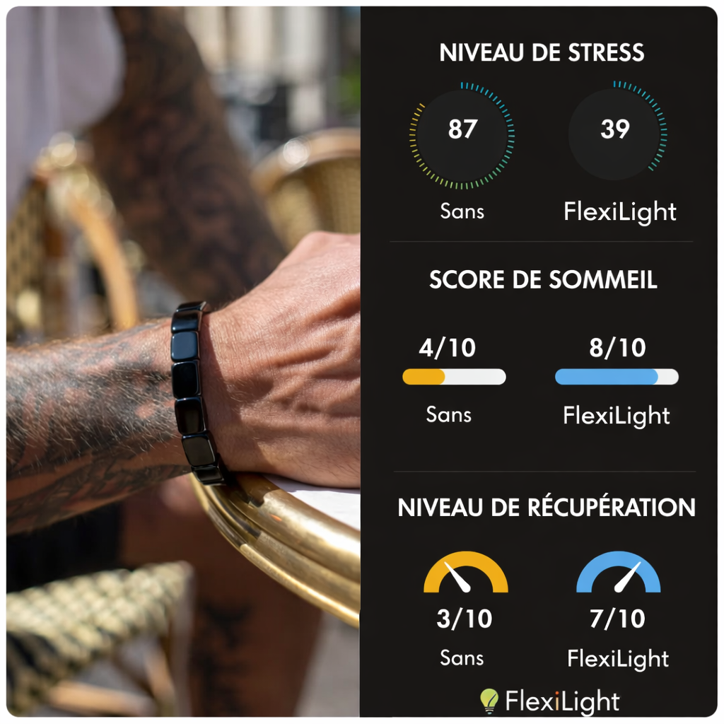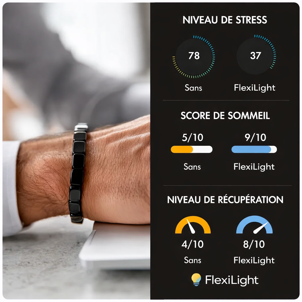 Le bracelet Flexilight ravive votre énergie masculine, votre concentration et votre confiance — avec un simple rituel quotidien.